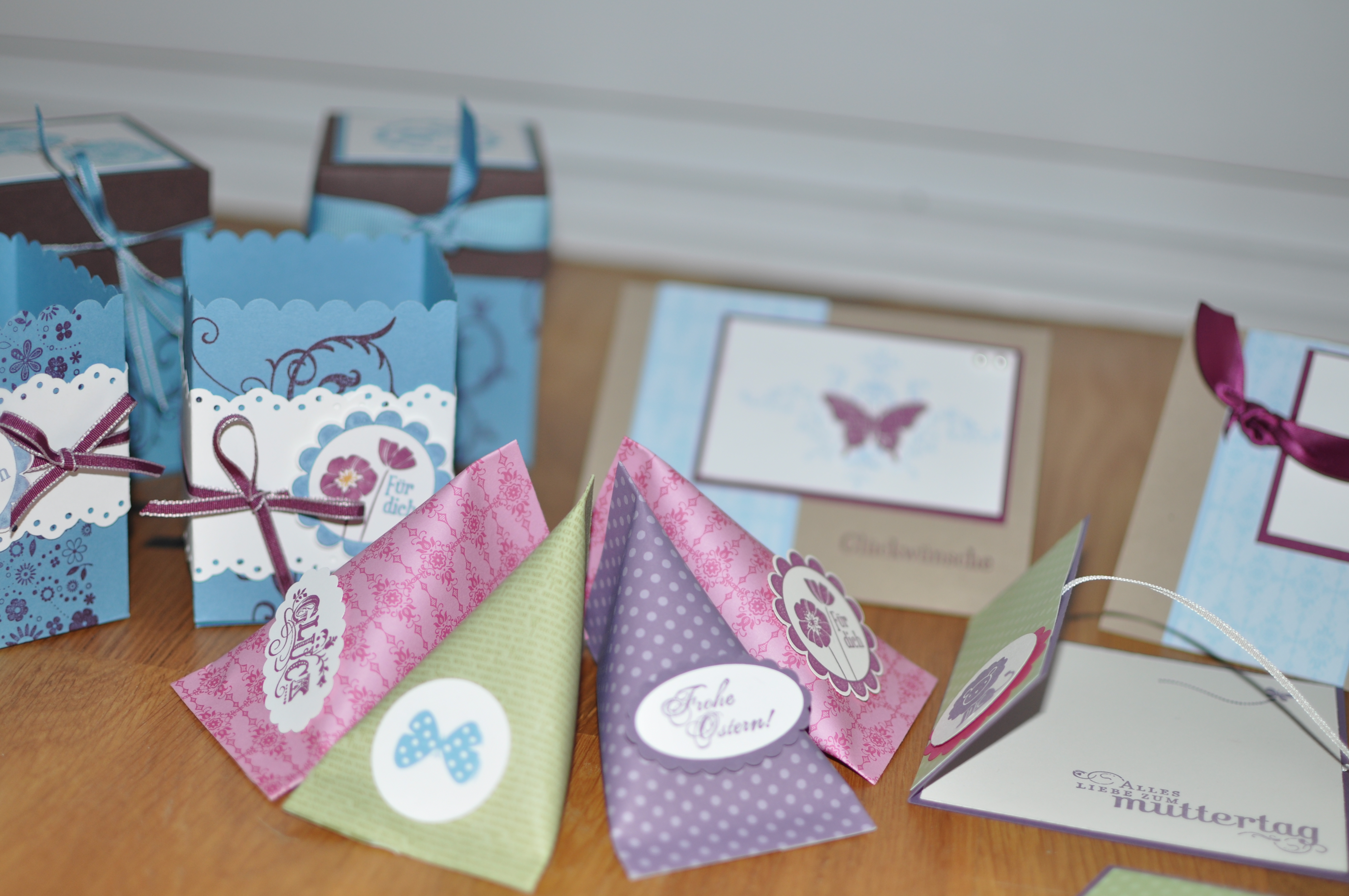 Gebastelt wurde natürlich auch und wir haben zwei tolle Projekte mit Produkten aus dem kommenden Mini-Katalog gemacht, der am 1. April erscheint. Leider darf ich daher unsere Bastelwerke noch nicht zeigen. Aber ich kann Euch schon sagen: Es wird große Neuigkeiten geben im Mini-Katalog auf die Ihr Euch freuen könnt. Und zwei der neuen Stempelsets bin ich auch schon total verliebt…