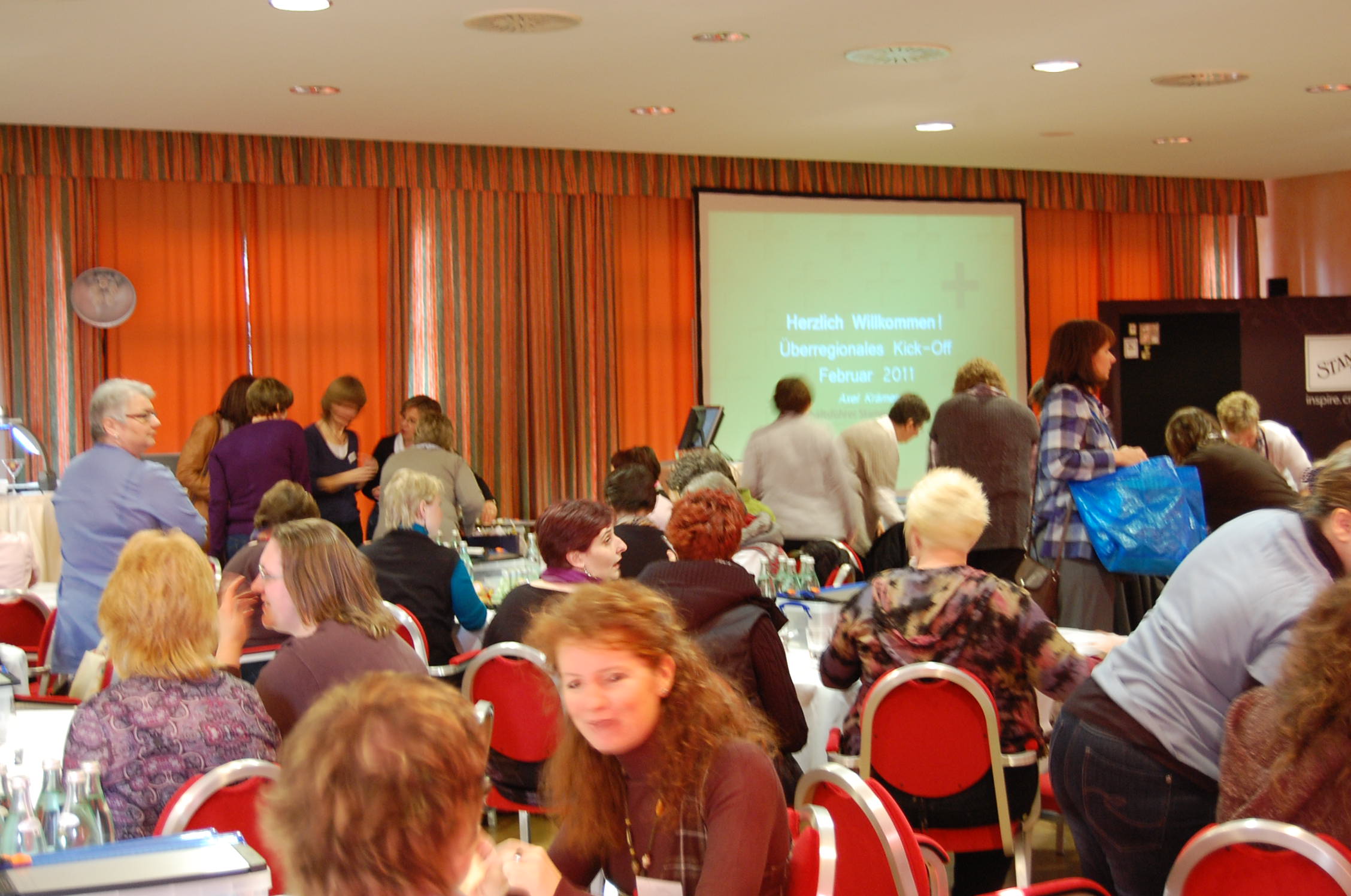 Ich glaube, der Konferenzraum des Mövenpick-Hotels Oberursel hat noch nie eine solche Veranstaltung erlebt: Über 200 schnatternde Frauen, die sich über Stempeltechniken, Farbkombinationen und dem Demo-Alltag austauschten.